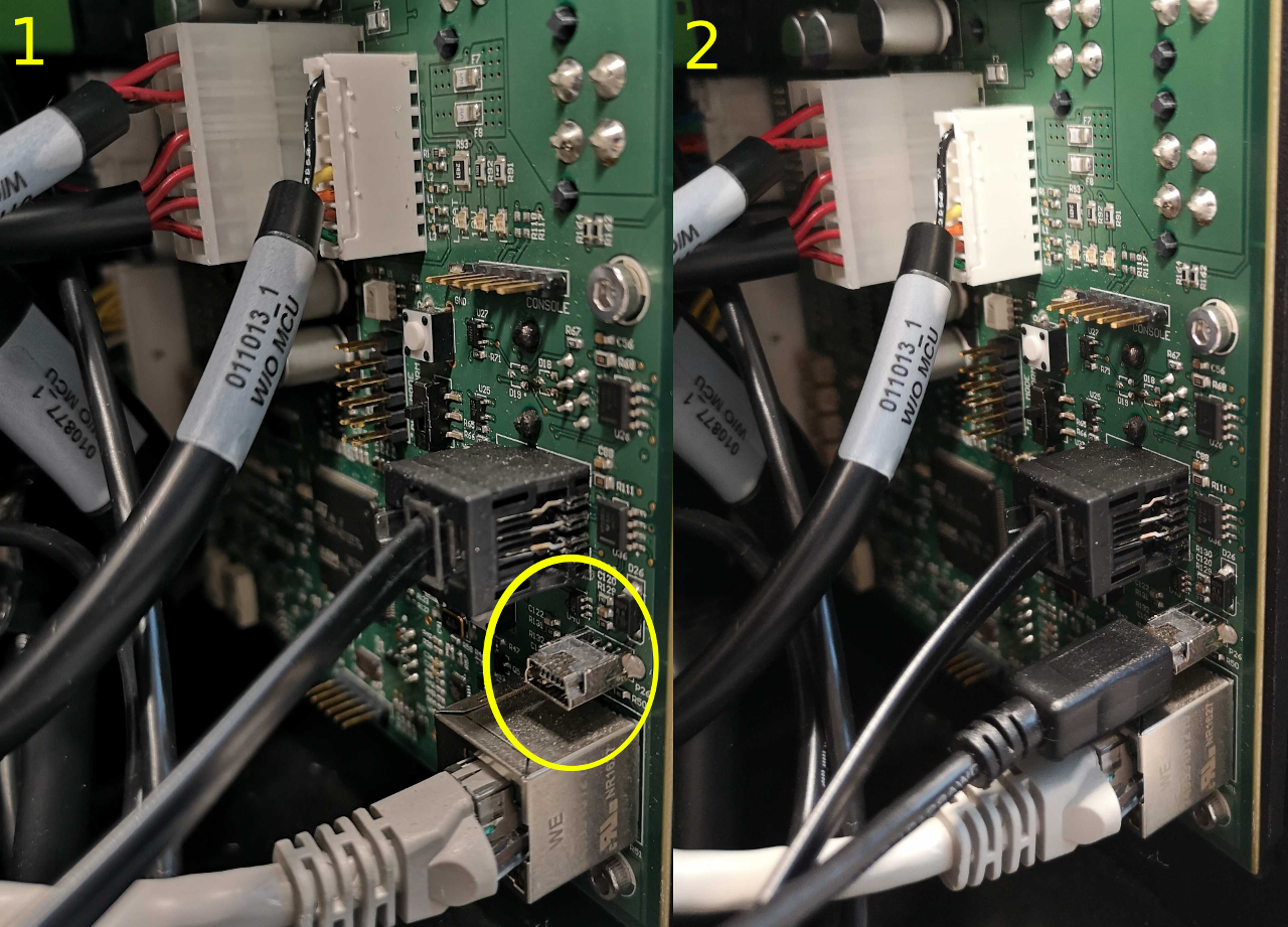 The robot's computer can also be connected to a DHCP network over Ethernet. Connect an Ethernet cable