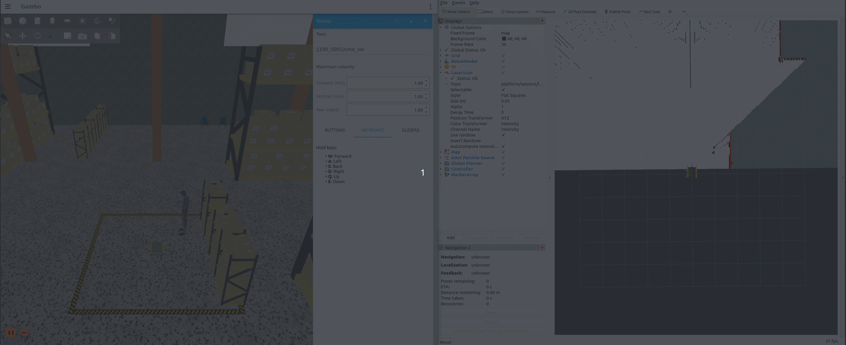 Simultaneous localization and mapping (SLAM) is a method of generating a map and tracking the robot's location within the map. It is generally done using laser scan data from a 2D LIDAR, and the robot's odometry. For this demo we are using the slam_toolbox package to map our environment. This tutorial will use the Clearpath simulator, but will work on a physical robot too. We will be using a J100 with a Hokuyo UST10 attached to the front of the robot.