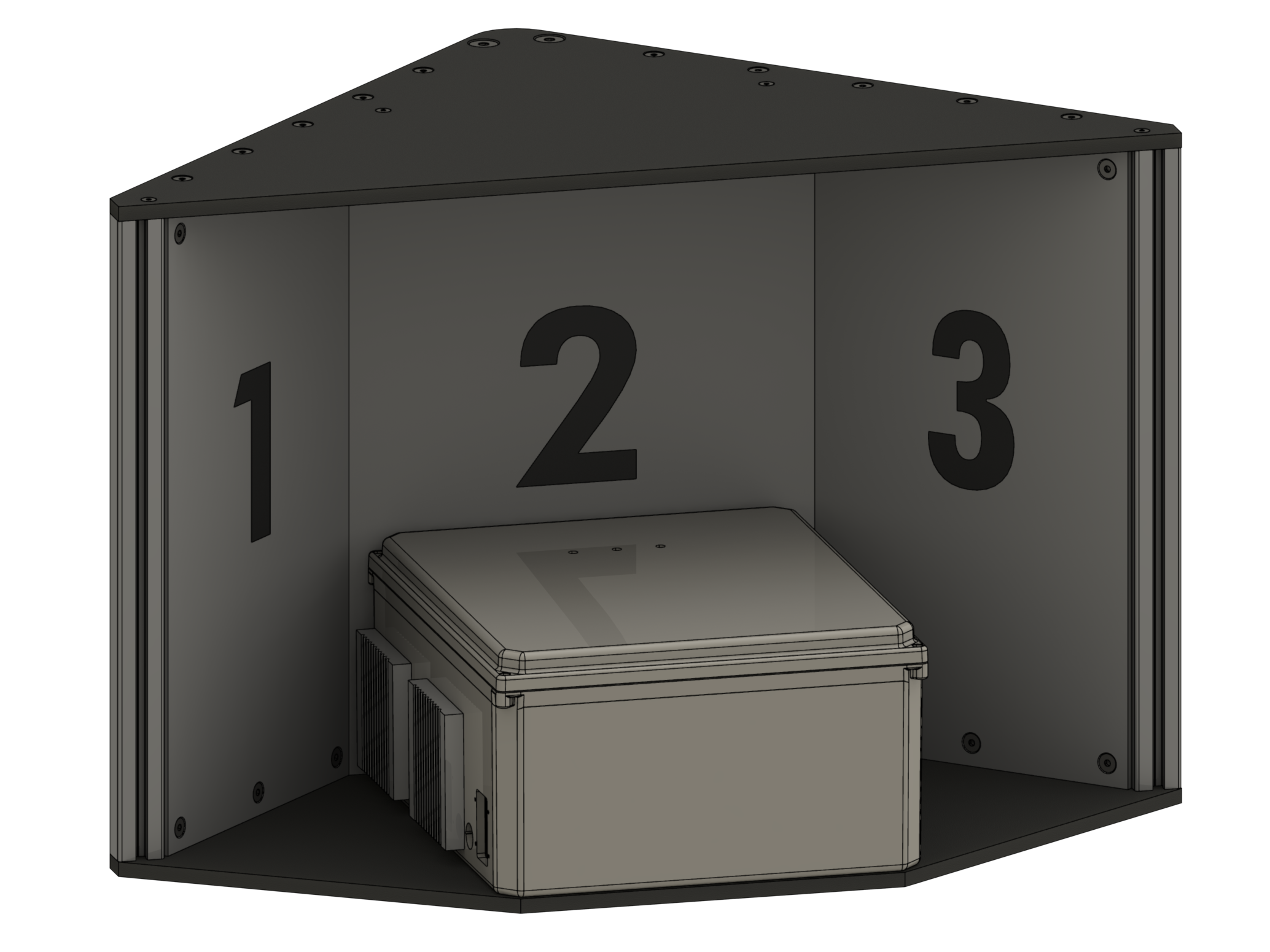 Start by manually driving the UGV to the dock target and align it as straight and centered as possible so that it begins charging. The Wibotic receiver on the UGV should be centered longitudinally and laterally with the circle on the Wibotic transmitter (TR-300).