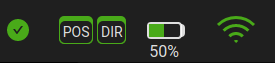 Let the UGV sit in this position for 2 minutes to acquire an RTK GPS fix. The POS (position) and DIR (heading) GPS status indicators on the UI should read as follows: