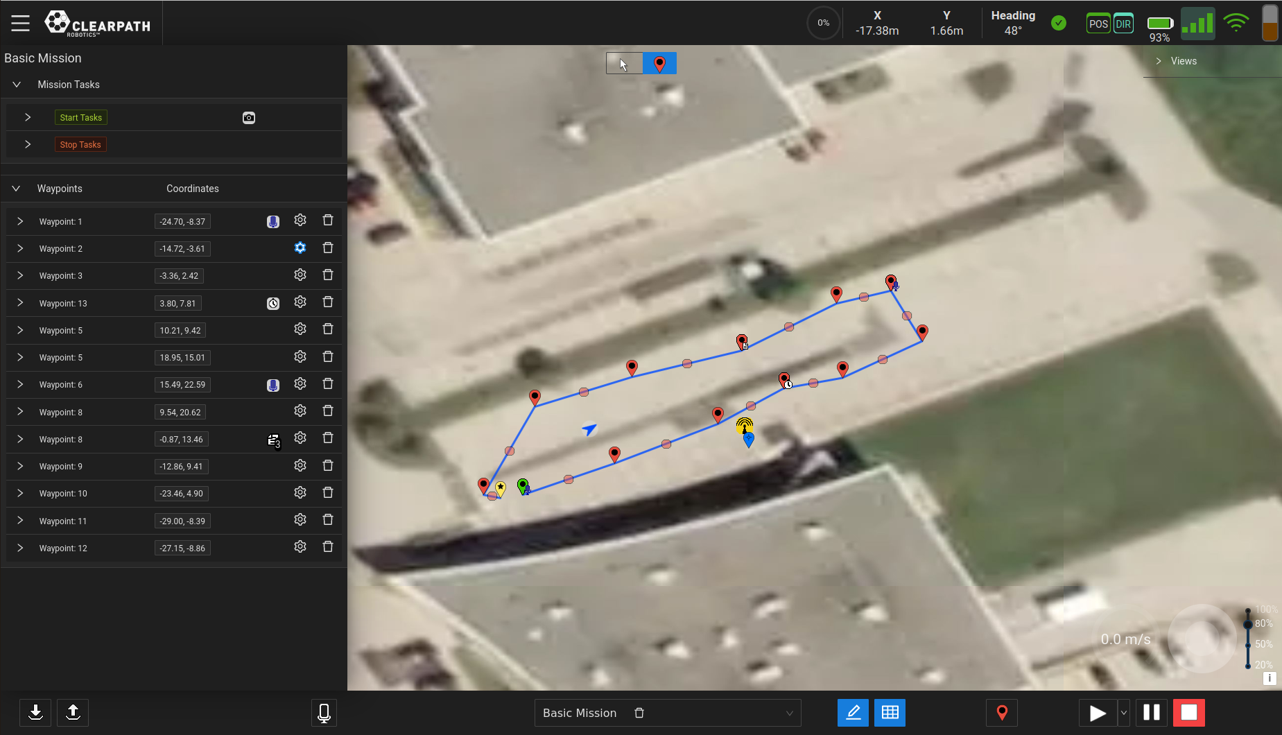 - Build missions containing sets of paths, with optional task execution on each path; tasks can be standard tasks (eg. save camera image) or user provided functions
