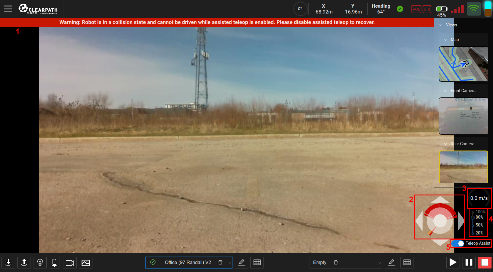 - Error/Warning Bar: A bar along the top of the page reporting the error or warning status of the Assisted Teleoperation feature.