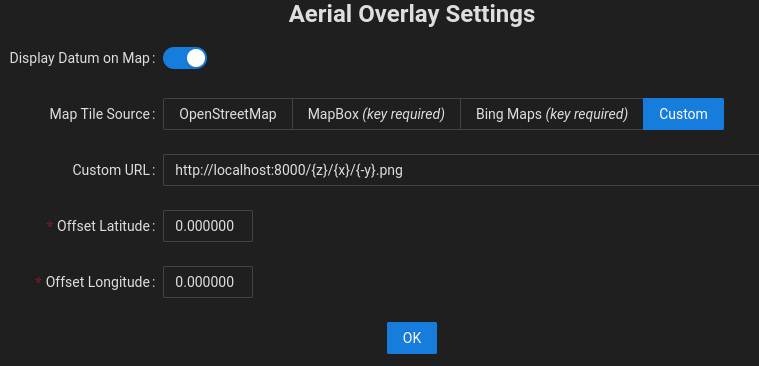 - Offset: The map tiles used in this software are not perfectly aligned with the real world. Therefore, the user may need to apply an offset to the map so that the UGV's position in the real world matches its position on the map.