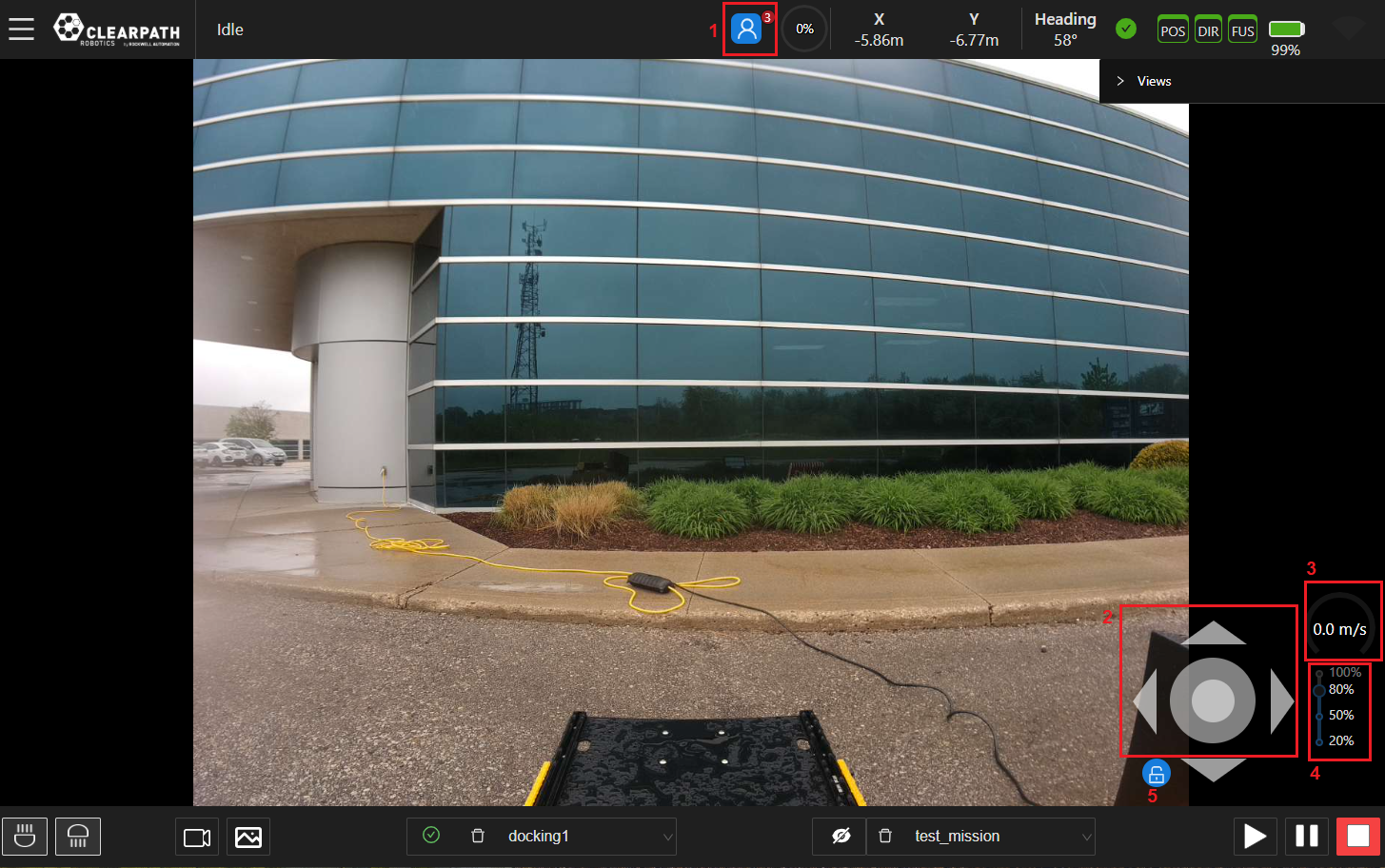 The Manual Mode in the Web UI allows the user to operate the UGV remotely (teleoperate) by using sensors on the UGV to visualize the environment and by using a joystick to control the motion of the UGV.
