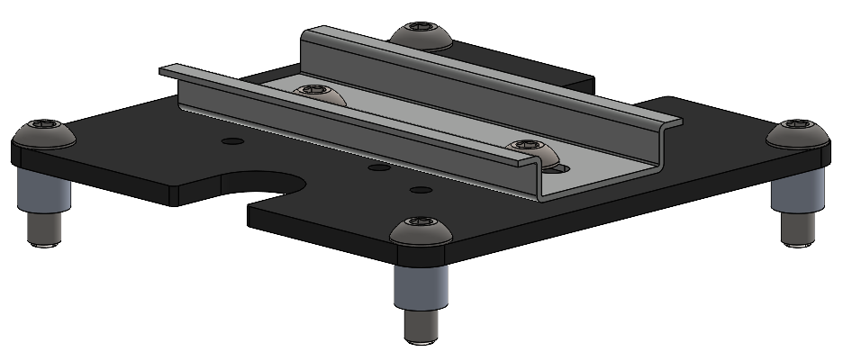 - Mount the DIN Rail (ID 2) to the attachment-plate (ID 1) using the M5 X 10 screws (ID 3) and nuts (ID 4).