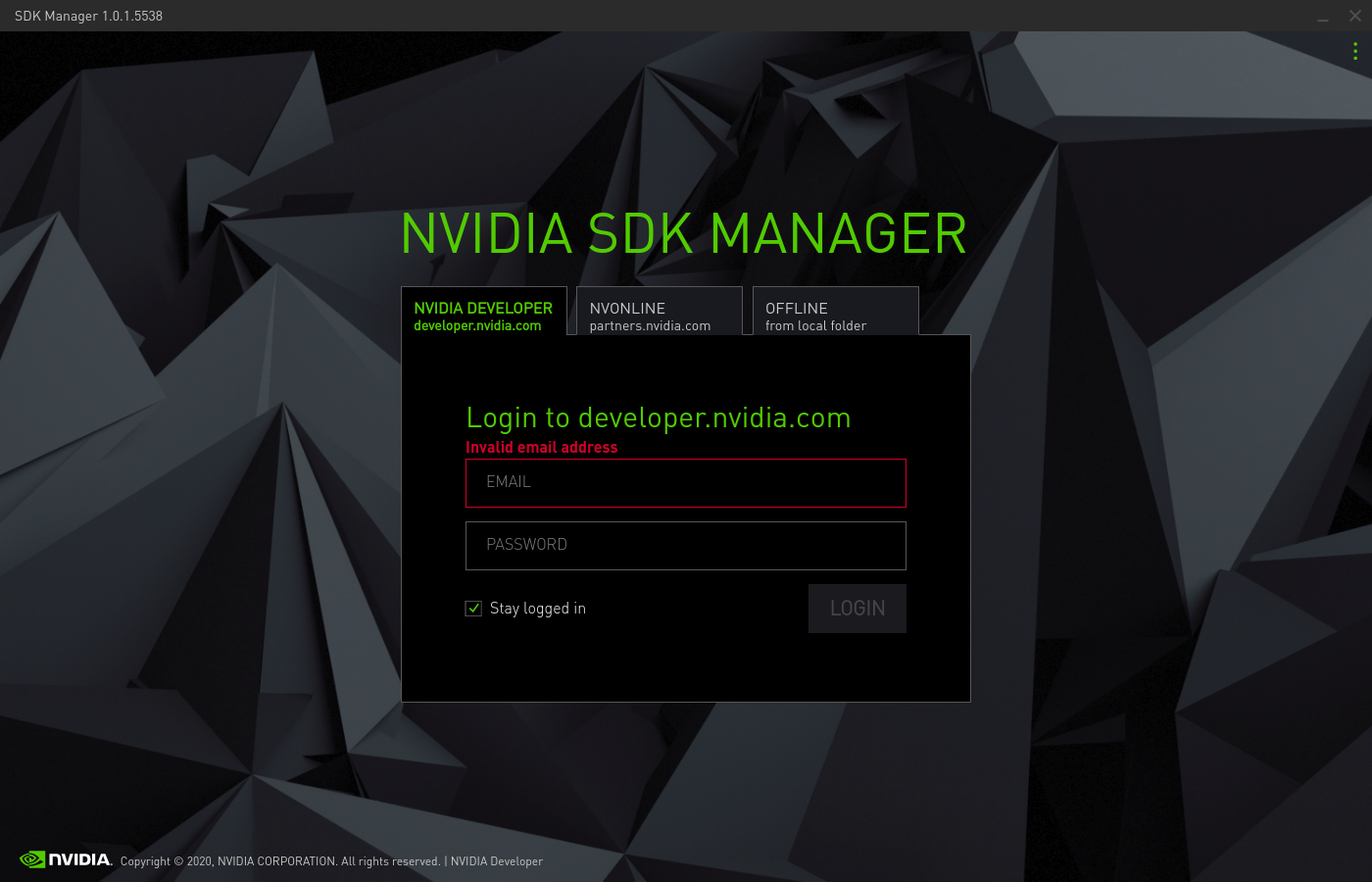 Login the the SDK Manager using your Nvidia developer credentials.