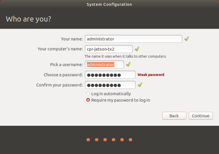 noteFor compatibility with older versions of the Jetson software, set the username and password to