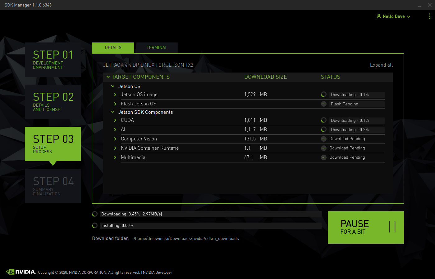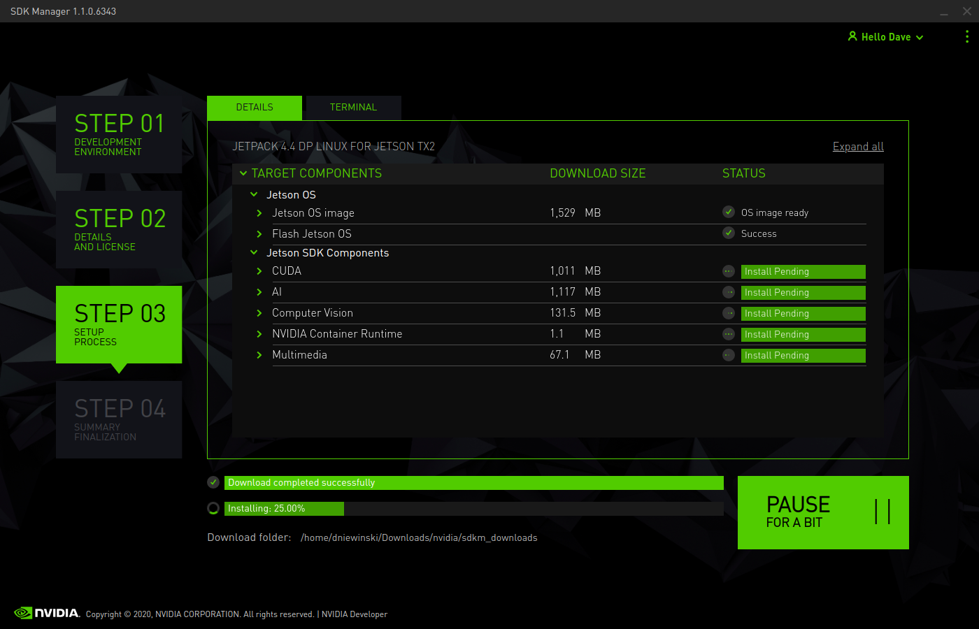 Step 2A: Download and Install Nvidia's SDK Manager (TX2 and Xavier AGX only)