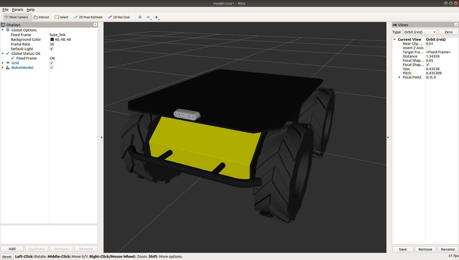 Husky's URDF model can be visualized in RViz. Once you have installed the desktop software in an upcoming tutorial, you will be able to run:
