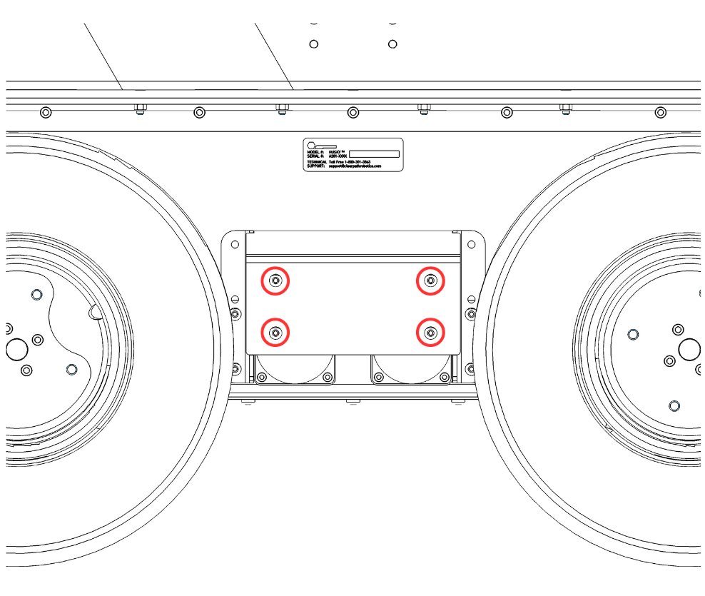 If a tire must be removed, first unfasten the four M5 Socket Head Cap Screws that join the wheel to the axle hub, then slide the wheel off the axle. When replacing the wheel, screws should be lubricated with Loctite® 243 and then tightened to 5 N·m ( 3.7 ft-lb ) torque.
