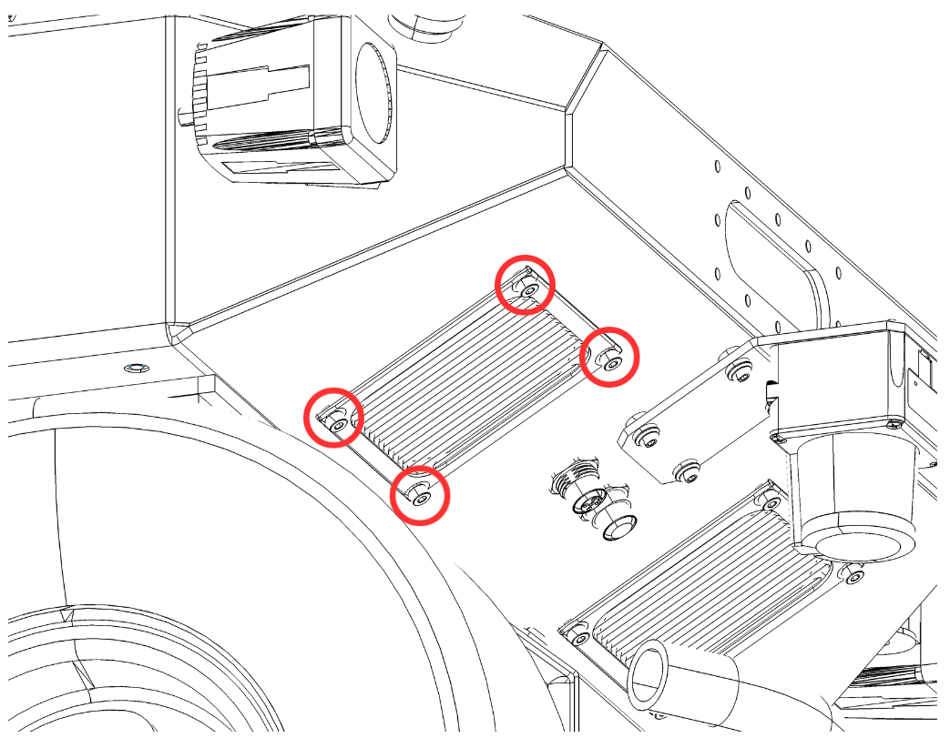 - Remove the four screws holding the fan cover panel in place as shown in the image below.