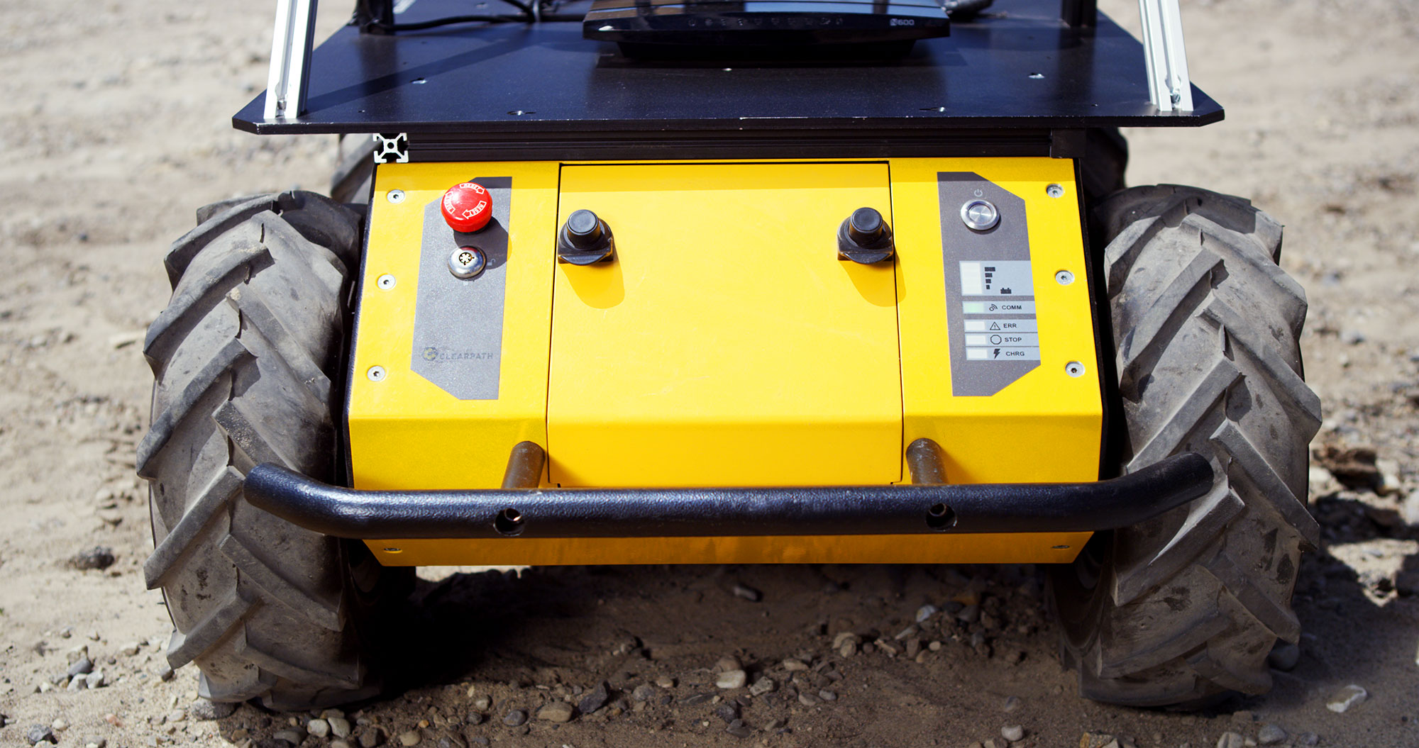- The Husky's motion-stop button is pressed.