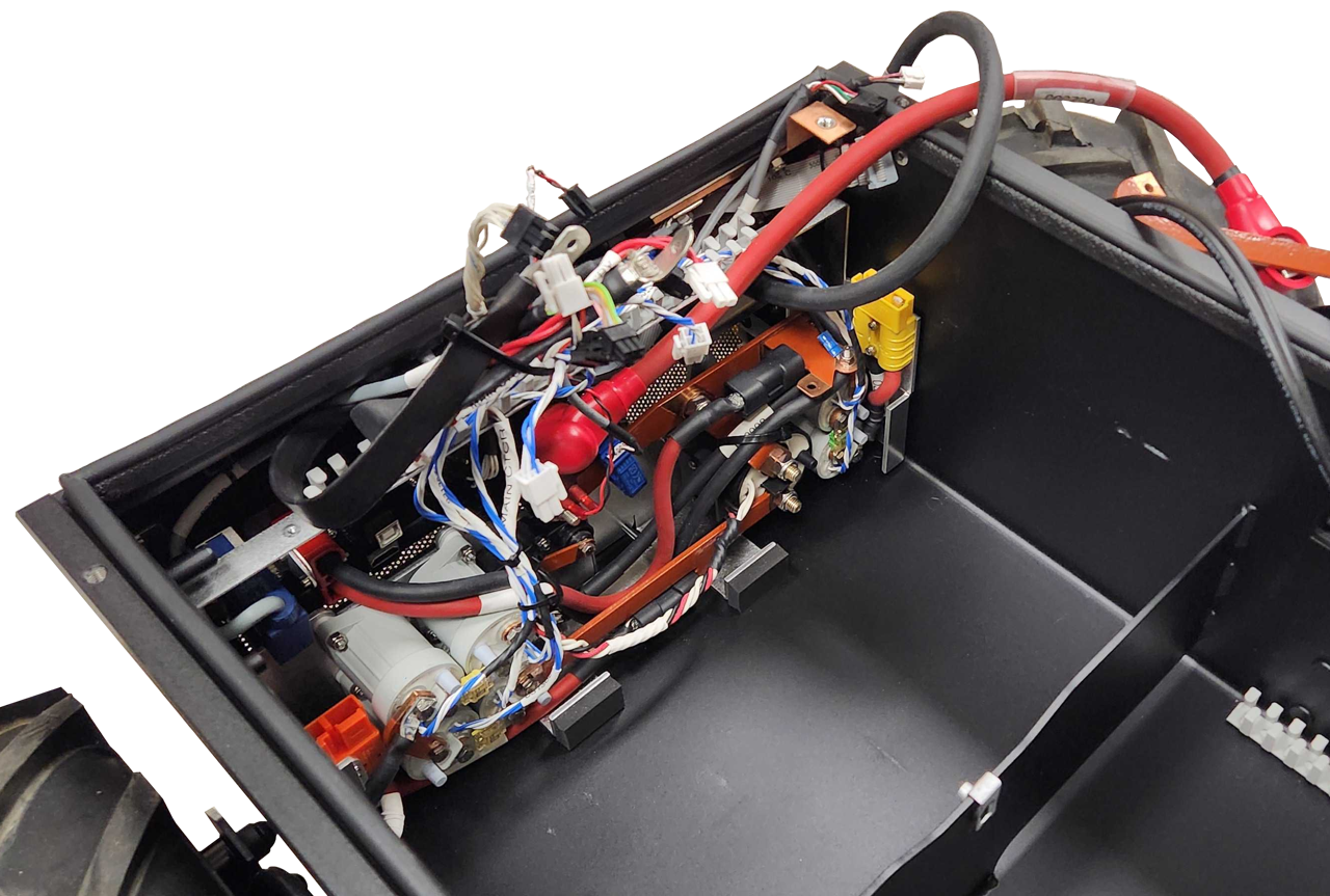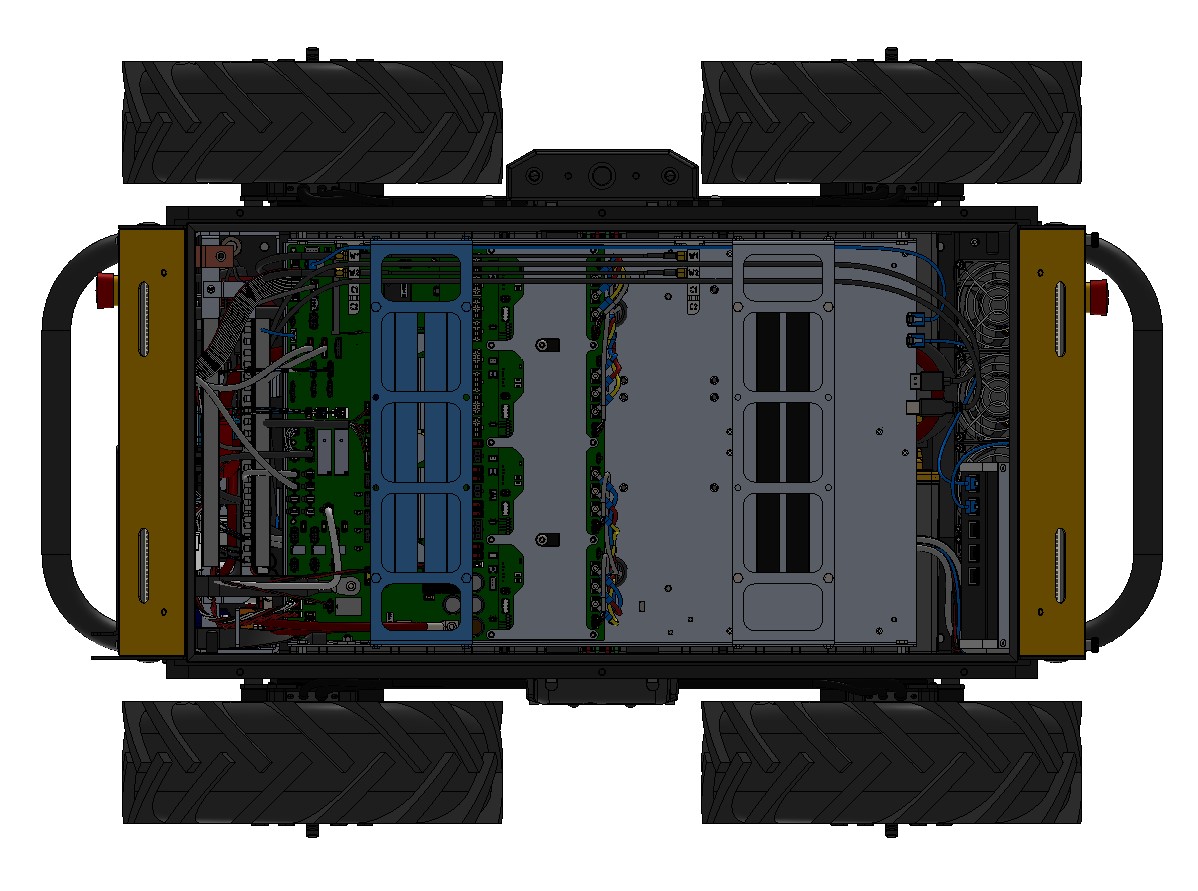 Husky is powered by LiFePO4 batteries. The function and health of these batteries is monitored by a Battery Management Unit—(BMU)—which is internal to each of the battery packs.