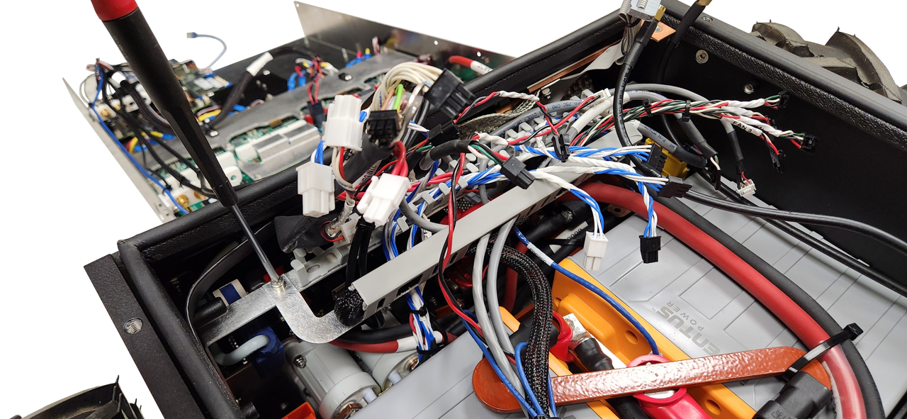 Lockout procedures remove potential energy from machines as we perform maintenance. This reduces risk of harm while performing maintenance. The Husky's main source of potential energy is the batteries. We cannot completely discharge these batteries without damaging them, but we can disconnect them from all the robot's electronics.