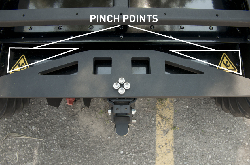 When operating the Warthog it is important to maintain a safe distance away from the unit. The suspension has the ability to pivot. Do not place fingers anywhere along the suspension link as it can result in injury.