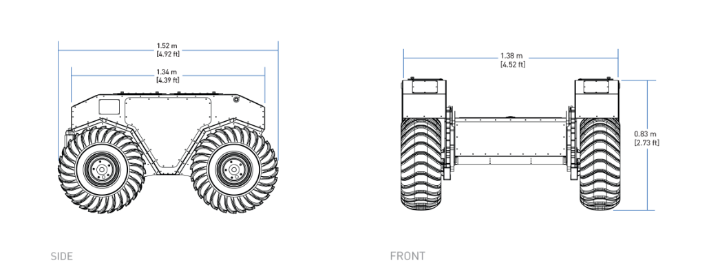 For more information and guidance on mounting payload structures on top of Warthog, please refer to subsection Mechanical Mounting.